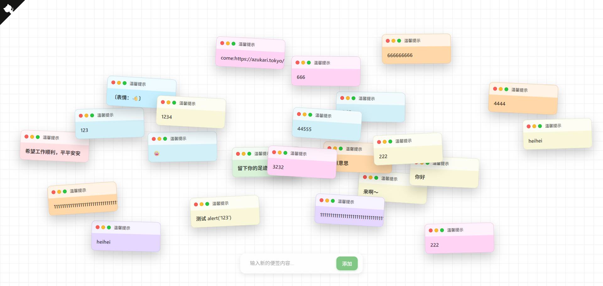 发现有很多人都觉得挺有趣的,那么也是有人提问能不能输入,当时那篇文章的是一个静态网站,是没有后端的,所以是没办法输入并在便签墙显示。