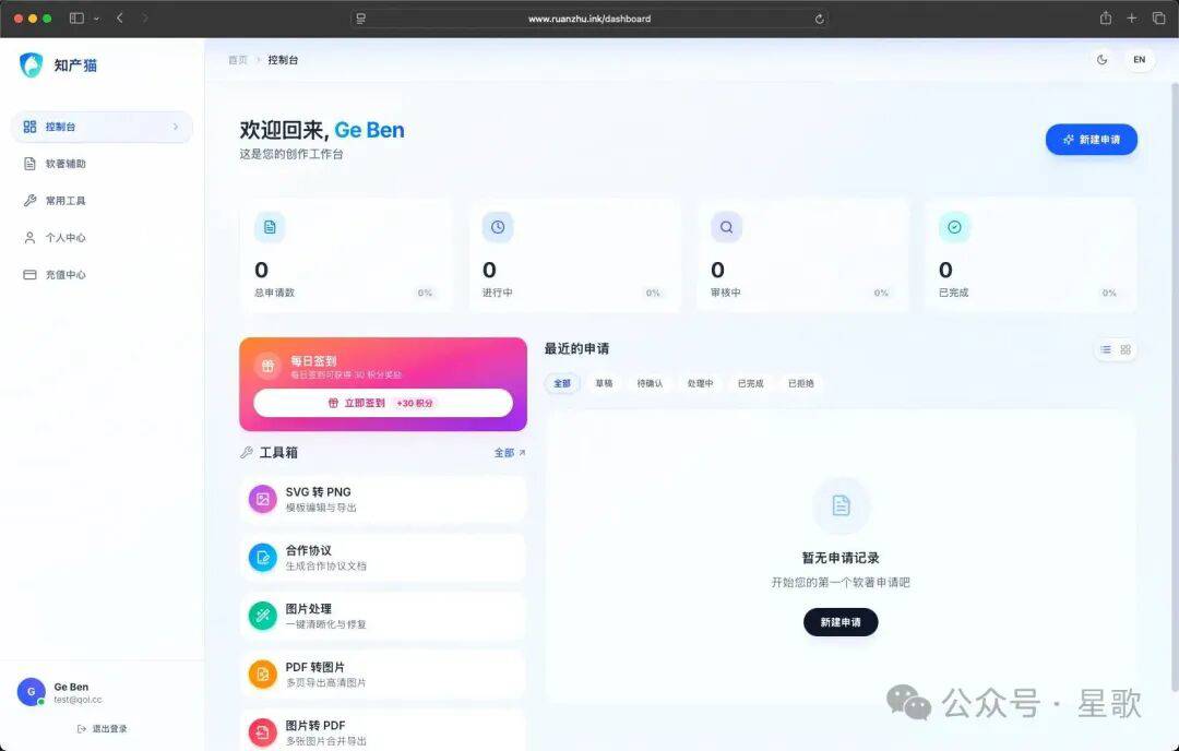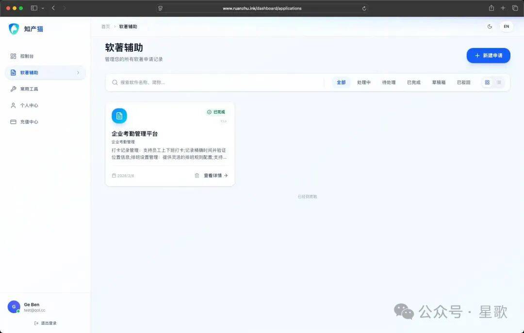 新建申请:填写软件名称、版本、功能描述等核心信息。
