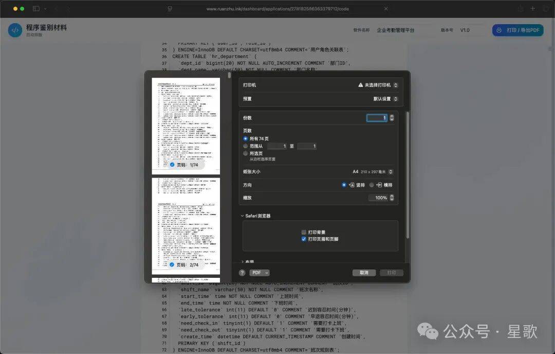 源代码工作台:代码自动排版、分页处理、打印/PDF 导出。