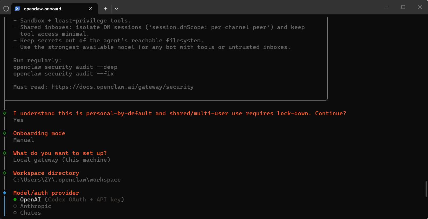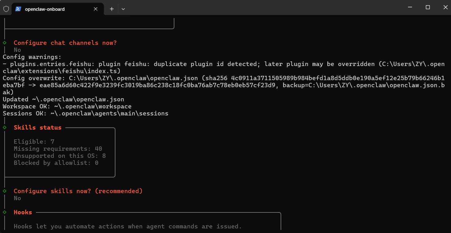 - 选择频道:跳过,后续会对接飞书。 ⏭️