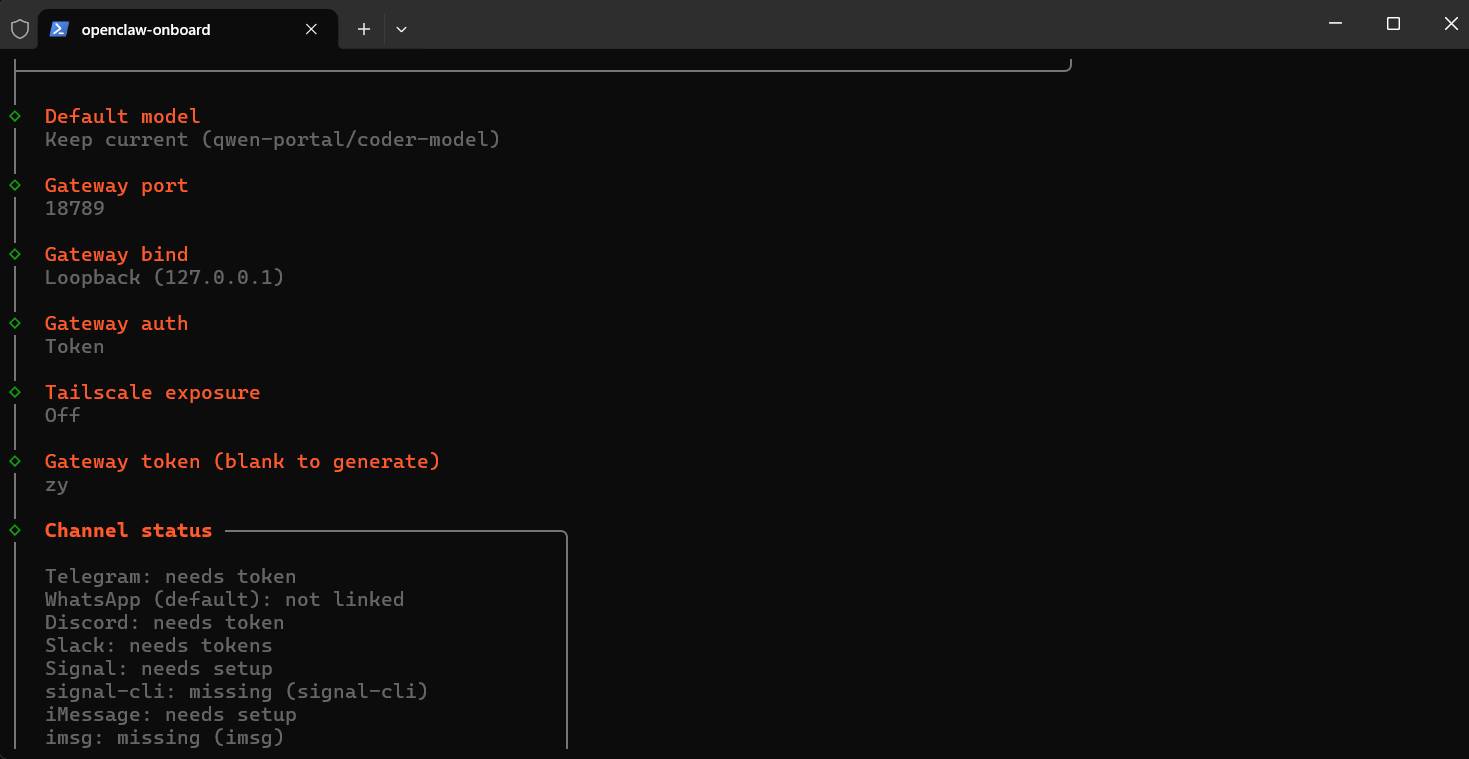 - 网关令牌:直接回车或自行输入,建议自行输入一个简单的 ✏️