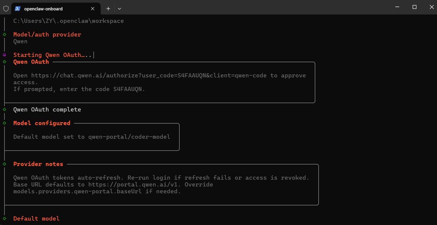 - 模型:Qwen(千问),此时会跳转千问登录页,注册或创建账号登录成功后返回控制台,目前是免费使用,不知道有没有限制。 🆓