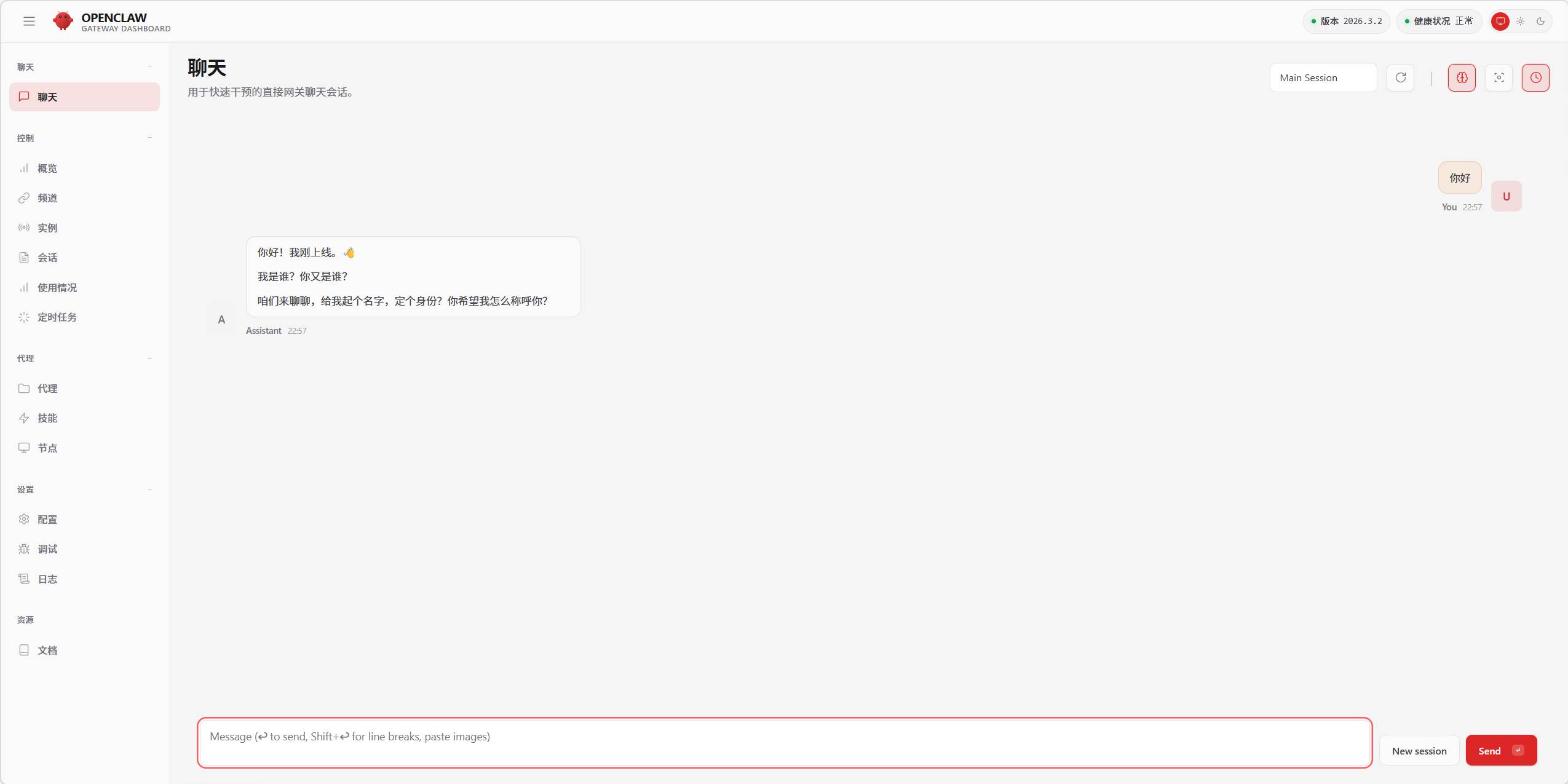 - 此时会新弹出一个控制台,不要关闭,然后通过打开http://127.0.0.1:18789/网址访问Web页面,如果网页无法对话,关闭PowerShell(终端管理员)输入