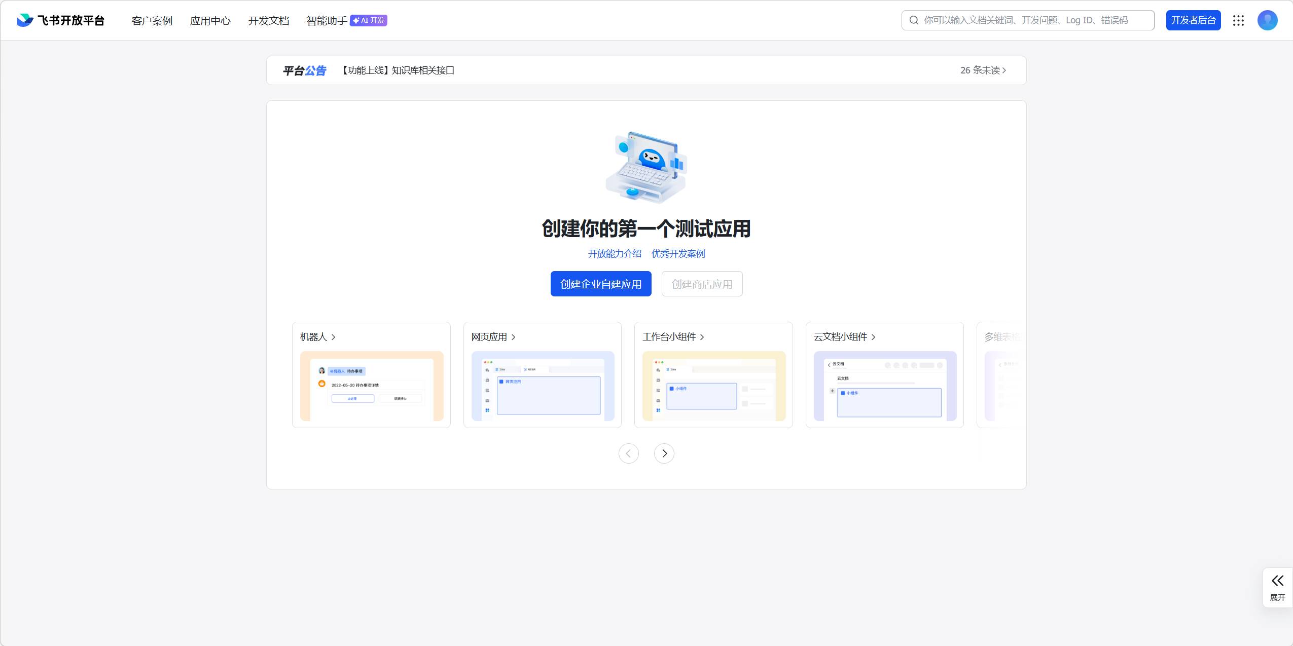 在飞书开放平台注册账号并登录。