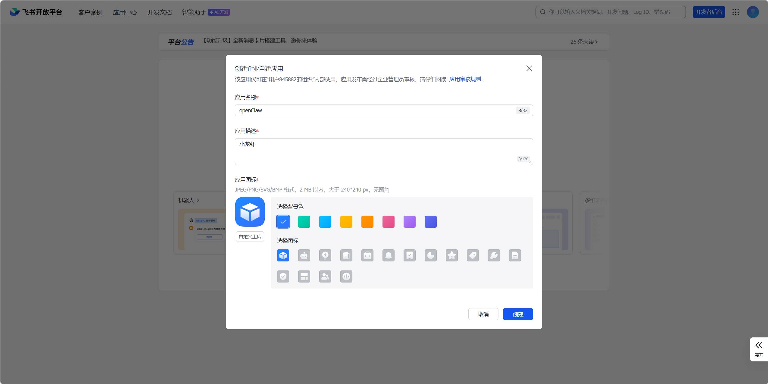 - 进入开发者后台创建企业自建应用 🏗️