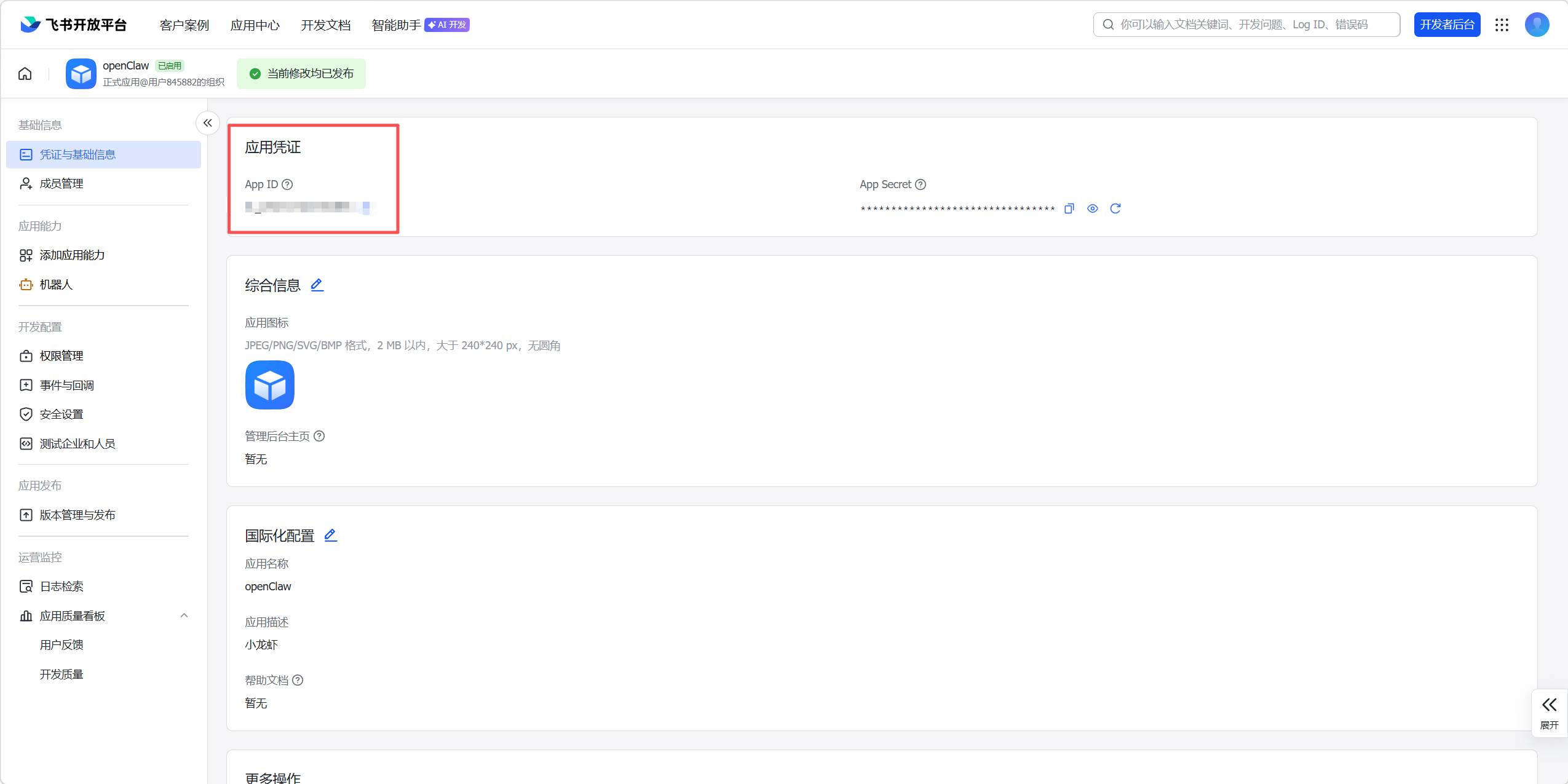 App ID和App Secret,后面OpenClaw会用到 🔐