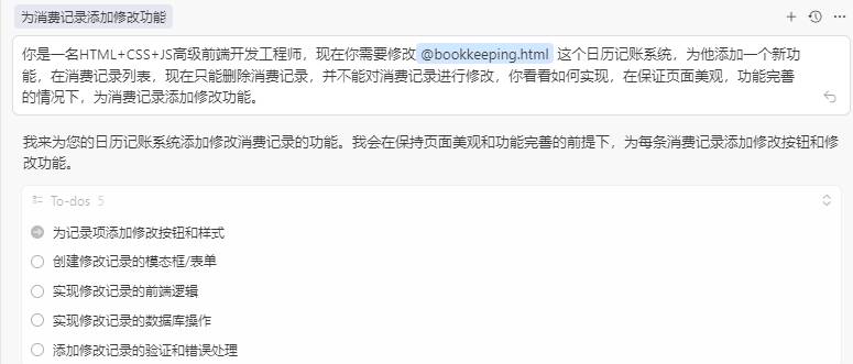 初版的系统只支持记账、查询和统计功能,功能较少,而且样式不够美观。接下来我也是继续让Deepseek优化和添加功能🛠️