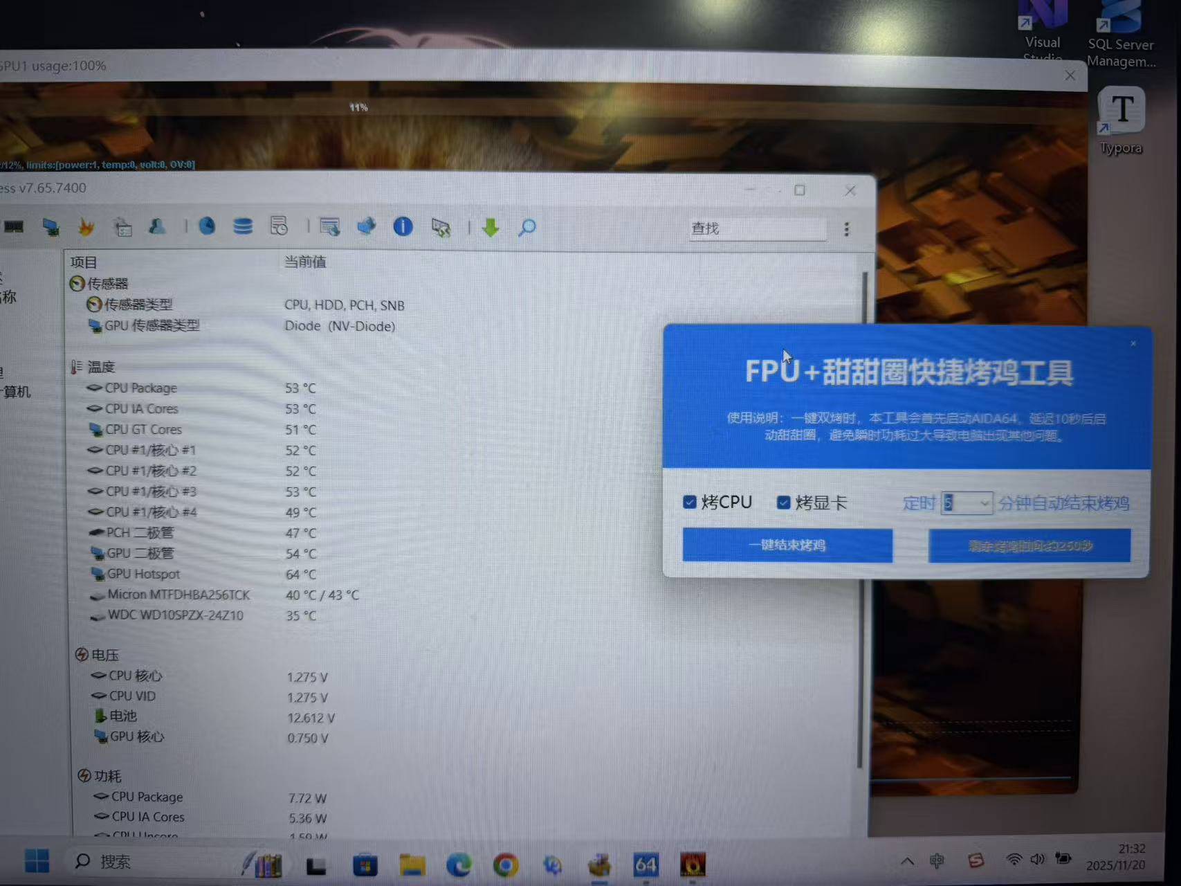 来小烤一下看看温度是否稳定。由于拆机之前忘记烤了,所以只有换硅脂之后的温度,少了对比。