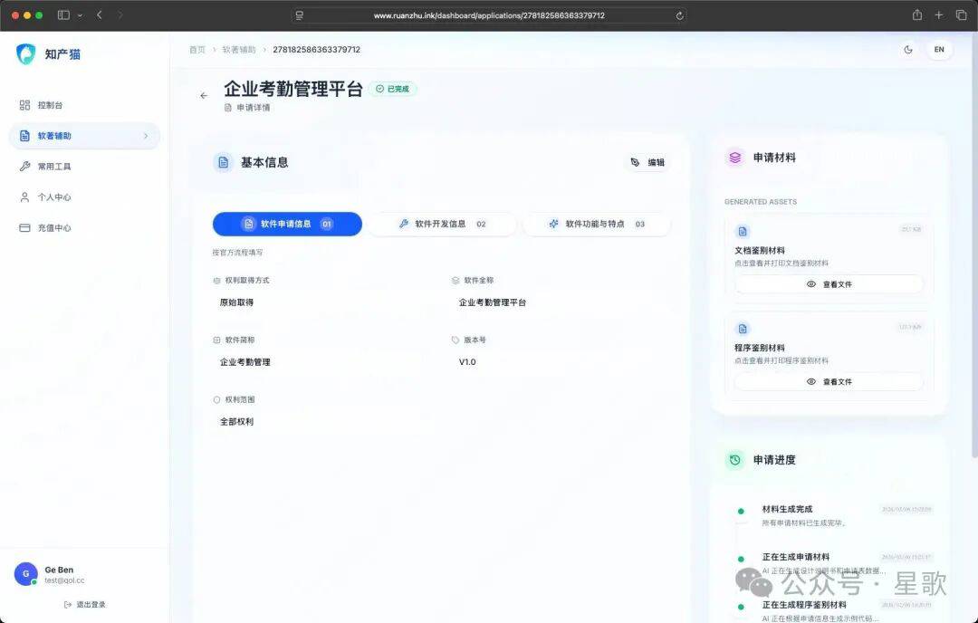 新建申请:填写软件名称、版本、功能描述等核心信息。